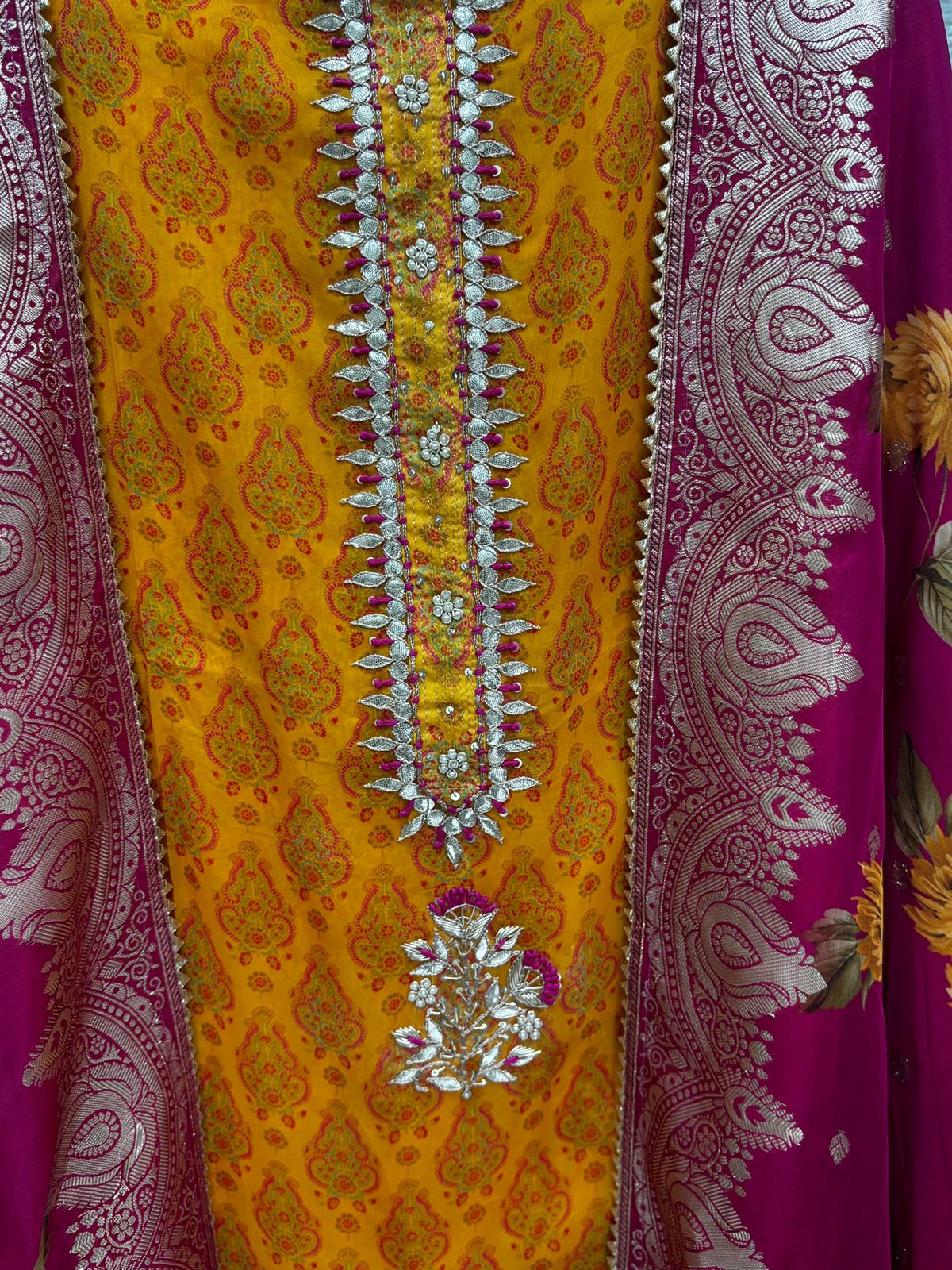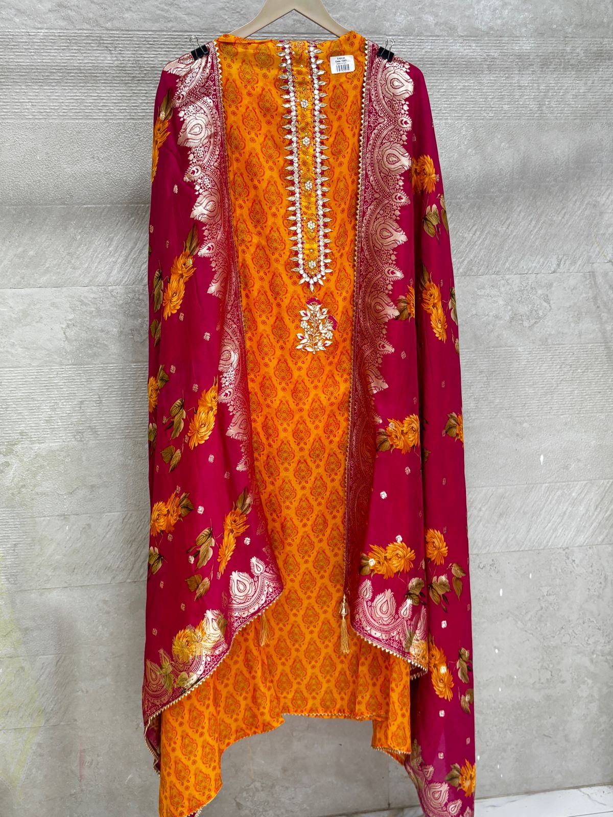 Step into elegance with our Printed Organza ensemble paired with a matching dupatta. Made from lightweight and breathable organza, this outfit showcases vibrant prints that bring a modern twist to traditional wear. The airy fabric drapes beautifully, while the coordinated dupatta adds grace and sophistication. Perfect for festive gatherings, daytime celebrations, or casual ethnic styling, this piece is designed to make you stand out effortlessly.