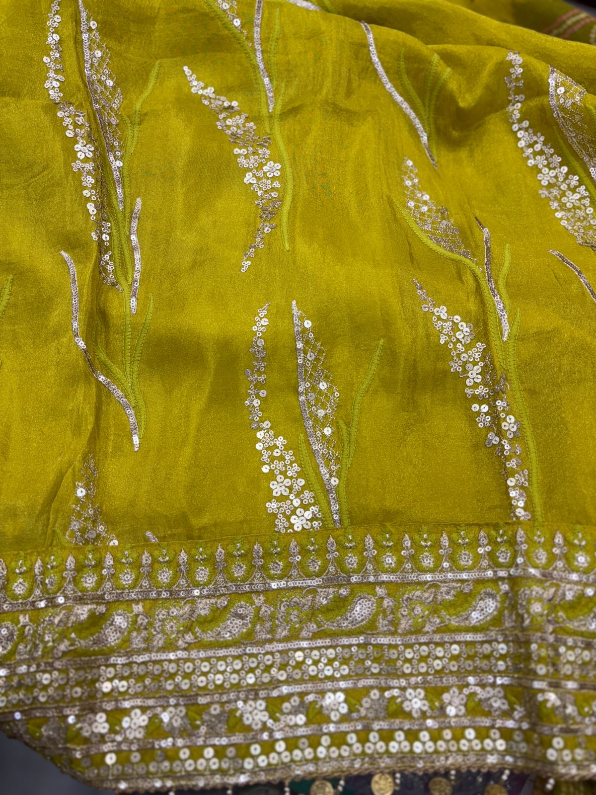 Be the first to review “Shimmer Organza unstitched suit with dupatta ( yellow)”