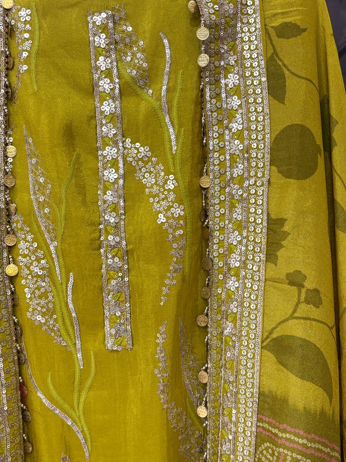 Shimmer Organza unstitched suit with dupatta ( yellow)